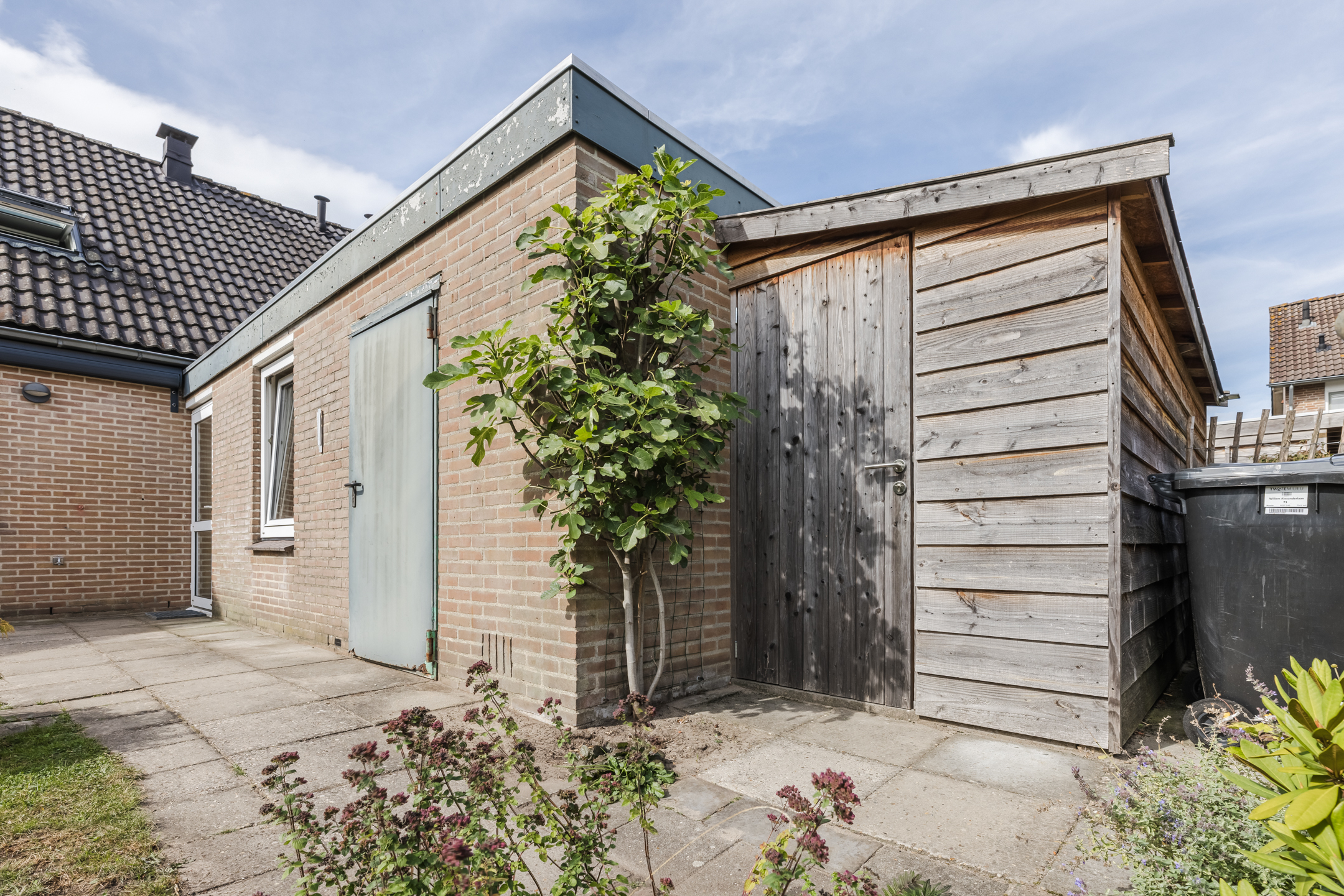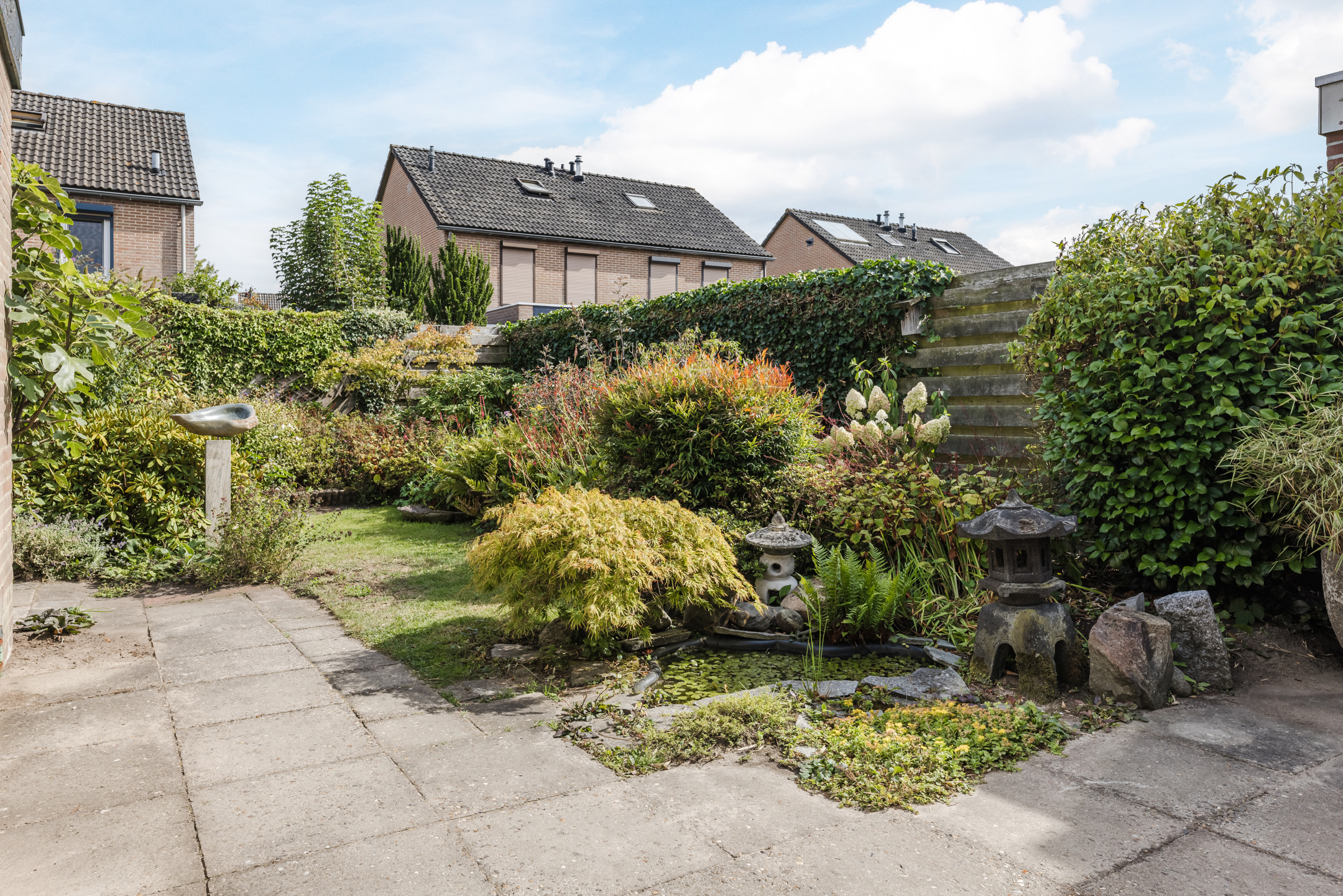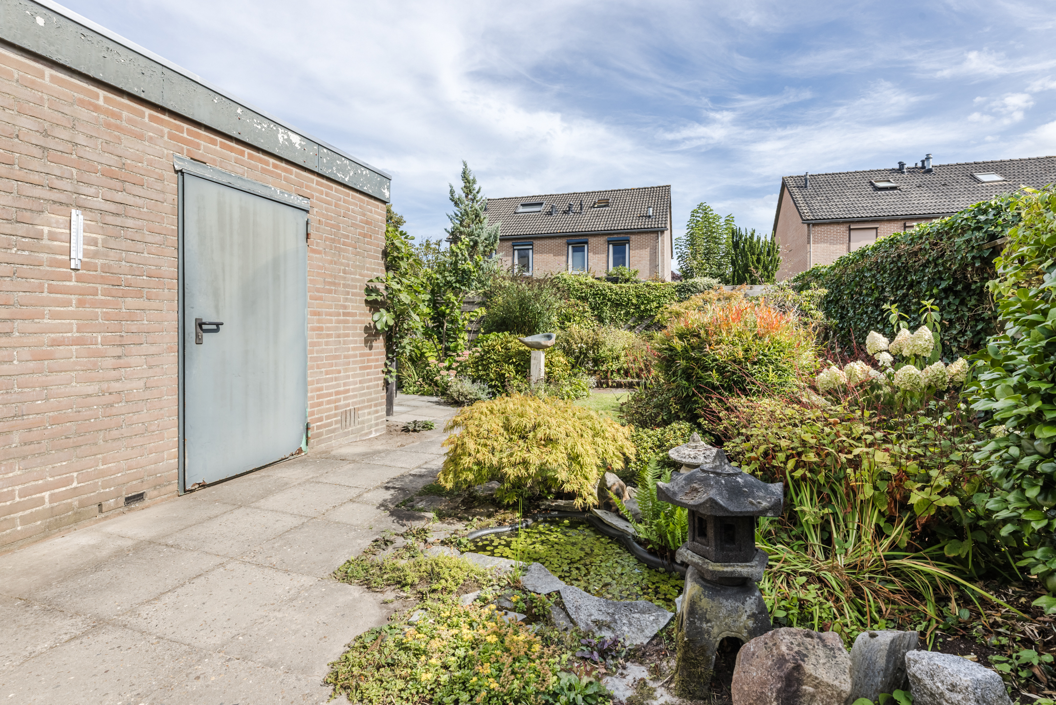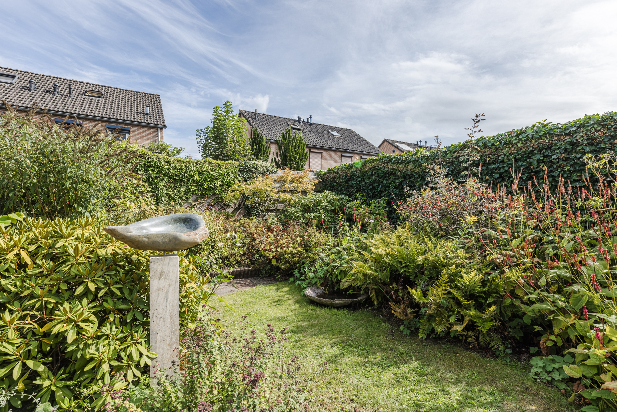 De woning beschikt over een tuin op het zuidoosten met volop groen, waar je heerlijk kunt genieten van rust en privacy. Dankzij de combinatie van sierlijke beplanting, een gazon en een terras is er ruimte om buiten te zitten, te tuinieren of gewoon te ontspannen. Aan de achterzijde van de woning bevinden zich bovendien twee bergingen: praktisch voor fietsen, tuingereedschap of als hobbyruimte. De tuin is gemakkelijk te bereiken via de zijkant van de woning.