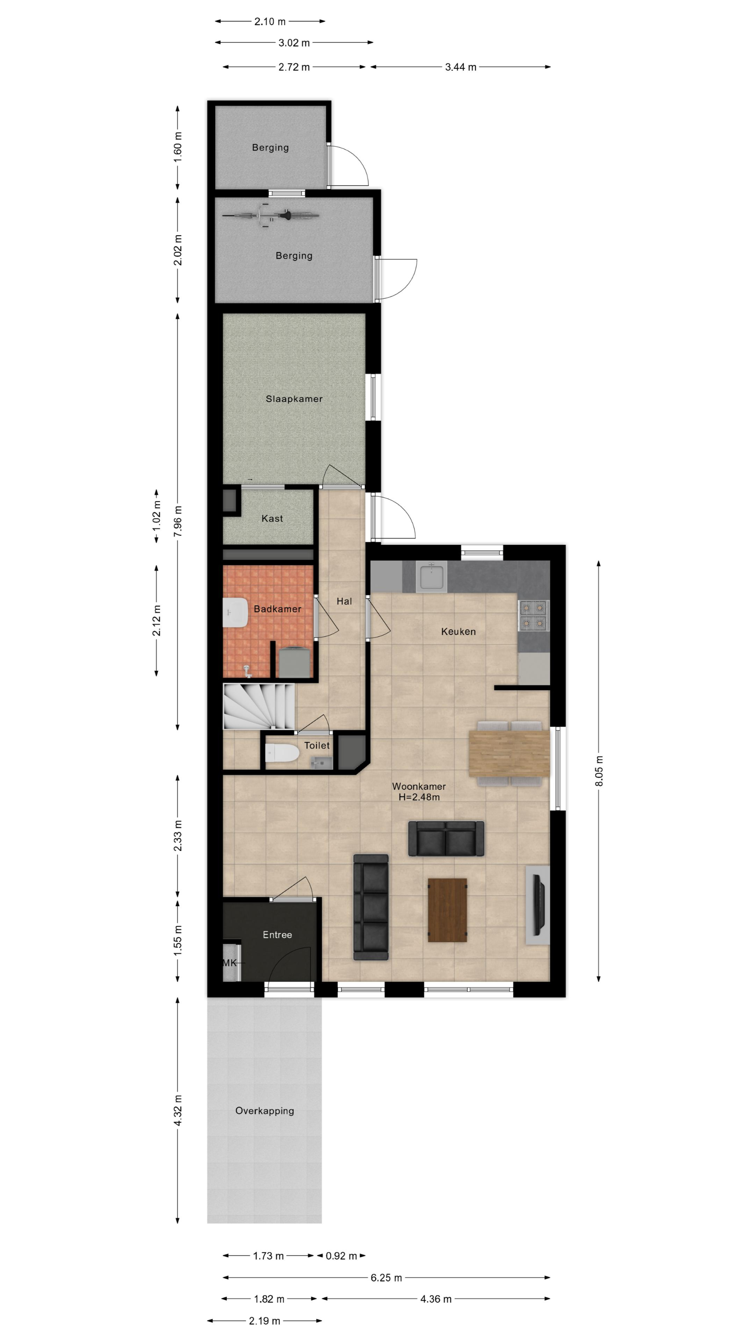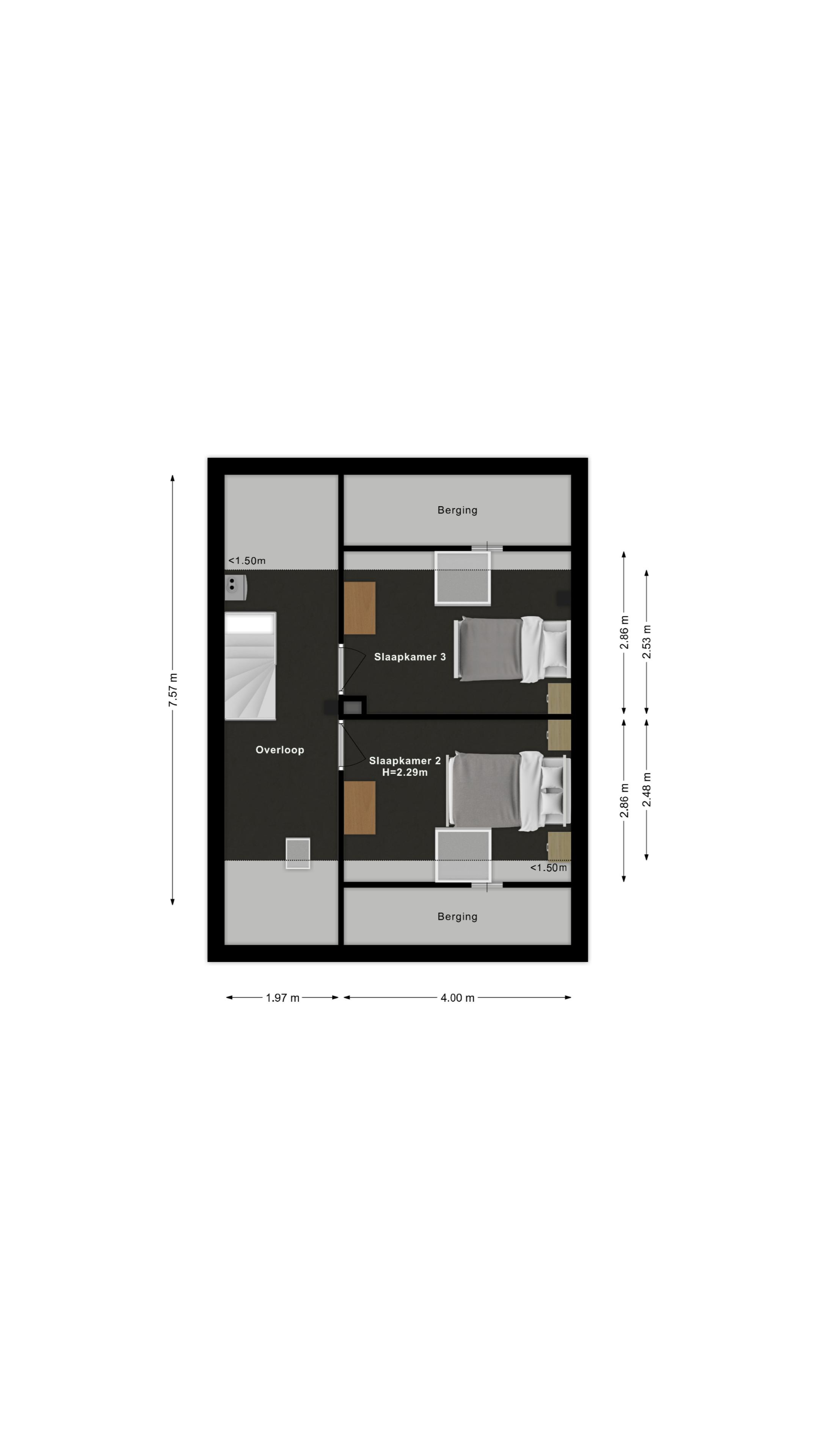 De tweede verdieping is te bereiken via een luik en dient als bergzolder.